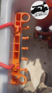 Elevate your organization and boost efficiency in your aerial devices with the Double D Big Rack – a durable, strong, and extreme weather-rated tool organizer designed specifically for power linemen and bucket trucks. Building on the proven design of the original Big Rack, this enhanced version features extra-large angled hooks for more space and quick access to tools and equipment, plus seven integrated tool pockets behind the tool board for even greater storage versatility. The depth remains identical to the original, ensuring seamless fit in tight bucket spaces. A must-have for productive linemen who demand reliability and safety on the job!